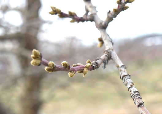 枝には芽がしっかり付いており、春に向けて花を咲かせる準備をしていました。